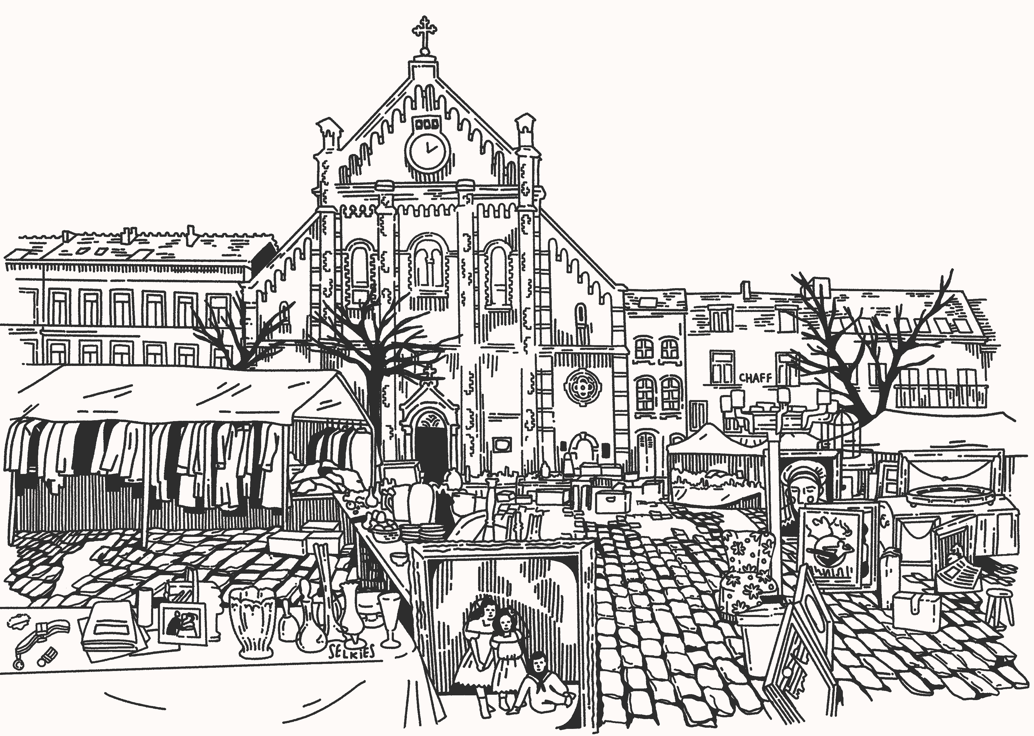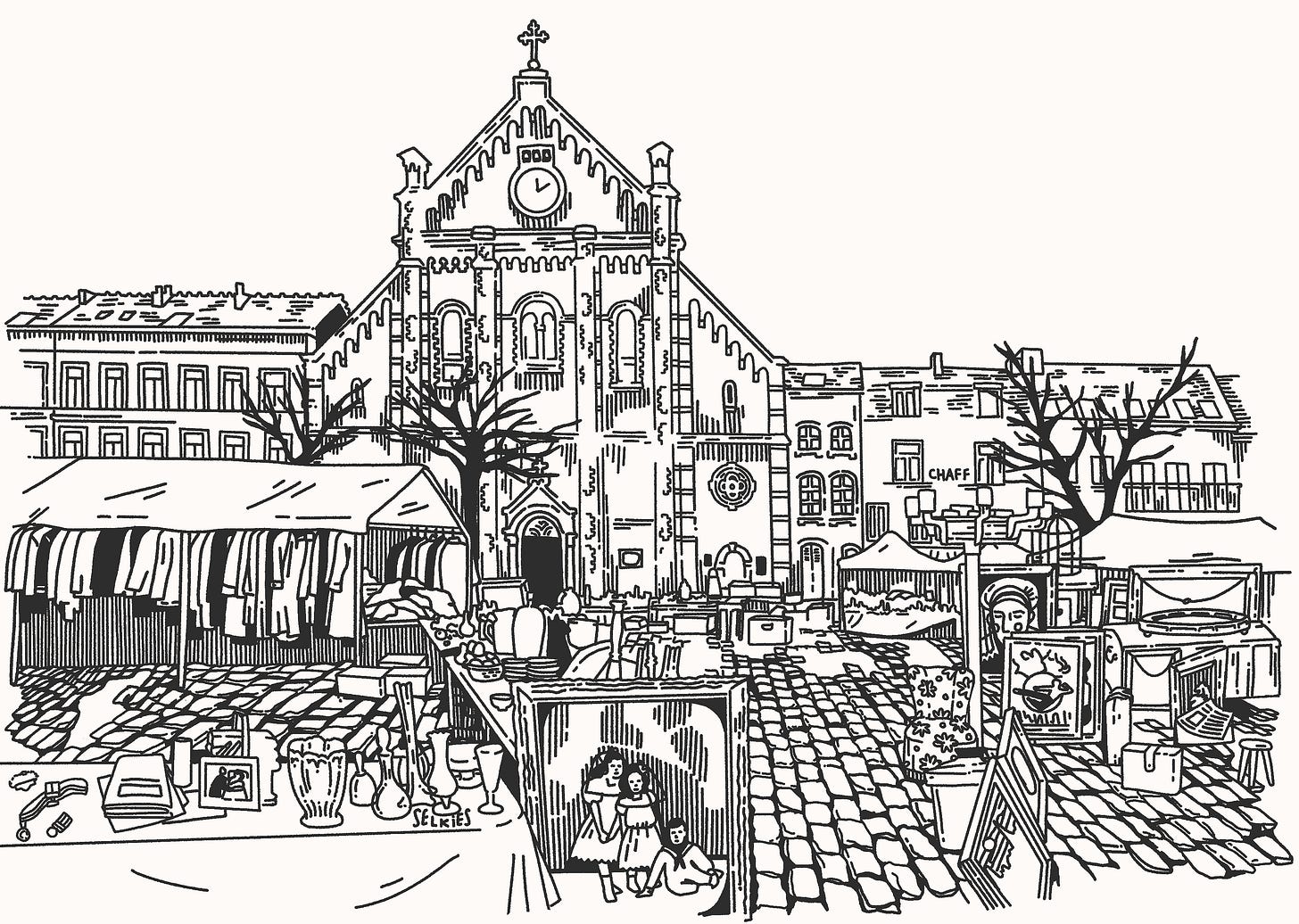 Brilliant sensory mapping here. The juxtaposition of that tidy café interior against the flea market chaos outside says alot about how these old spots survive by being little islands of routine. I've noticed the same thing at markets back home where the regulars move through like tey know something tourists don't.